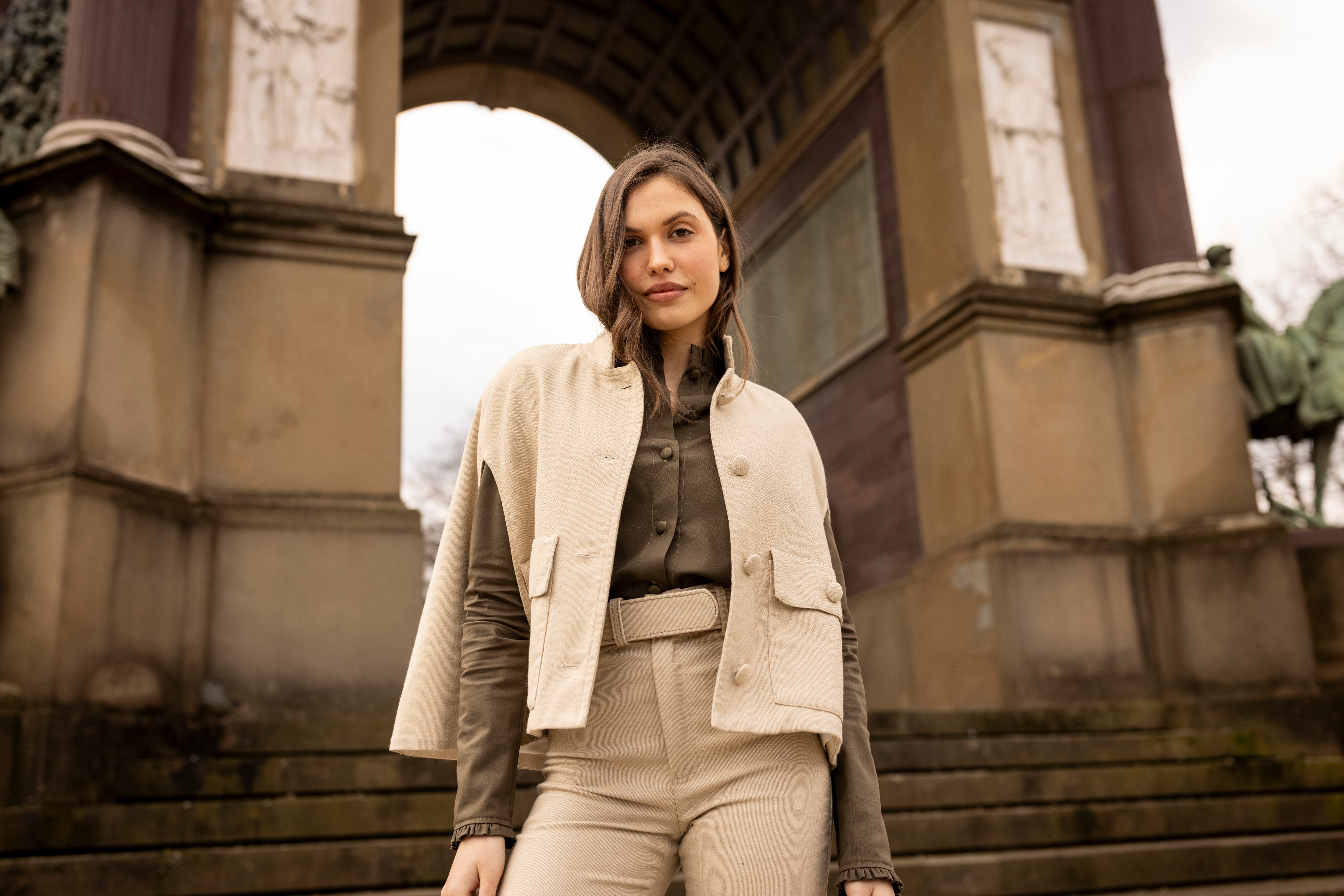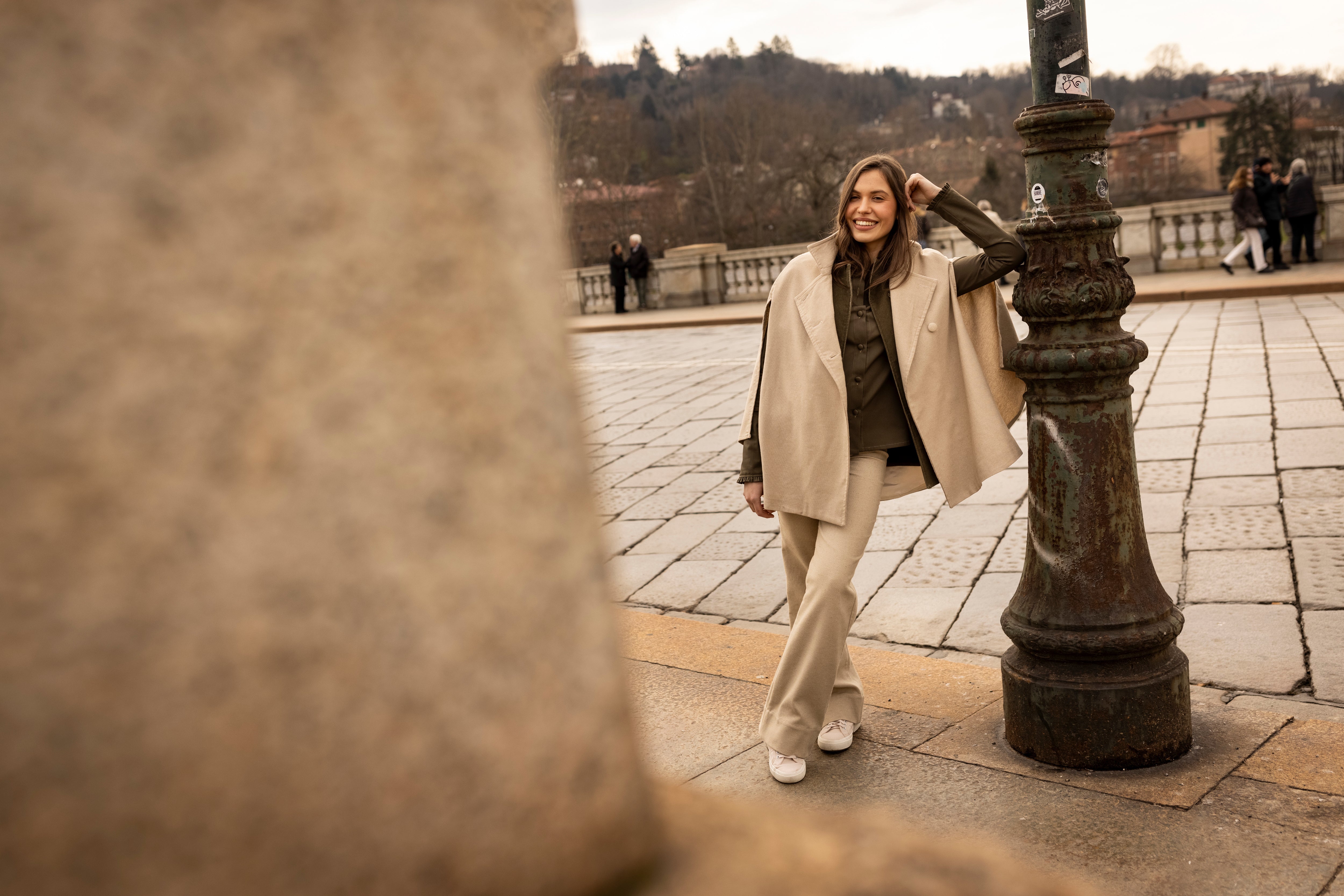 Crafted from 100% virgin Woolmark-certified wool, the Giulia Cape offers refined elegance and all-season comfort. With its minimalist silhouette, this piece effortlessly transitions from day to night, elevating both casual and formal looks. Made in Torino, Italy, it reflects Italian craftsmanship and a dedication to lasting quality, making it a versatile outerwear essential for the modern woman.