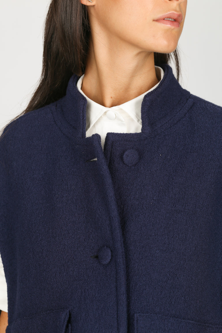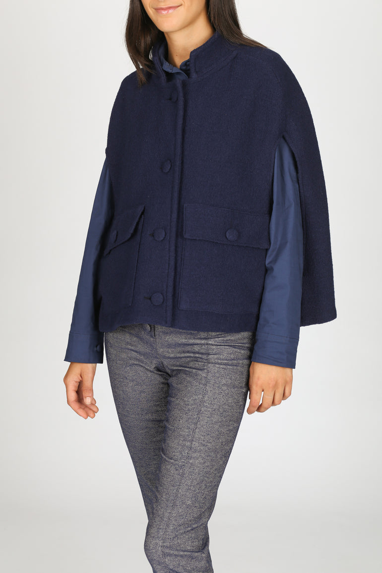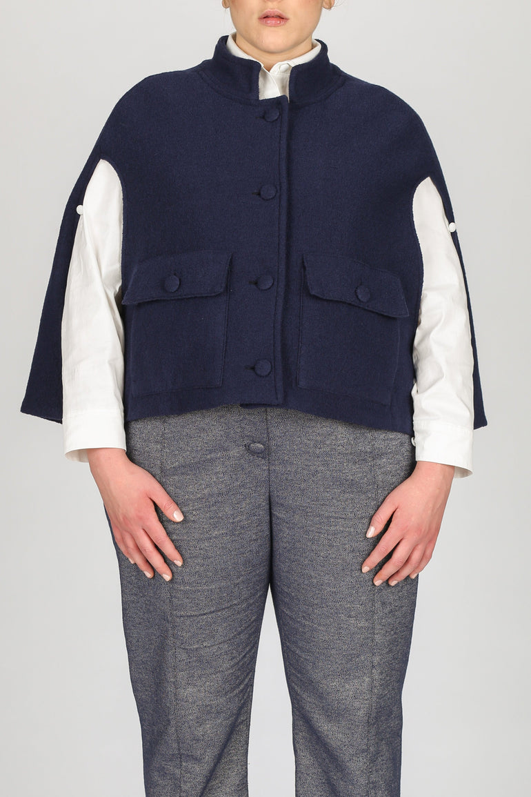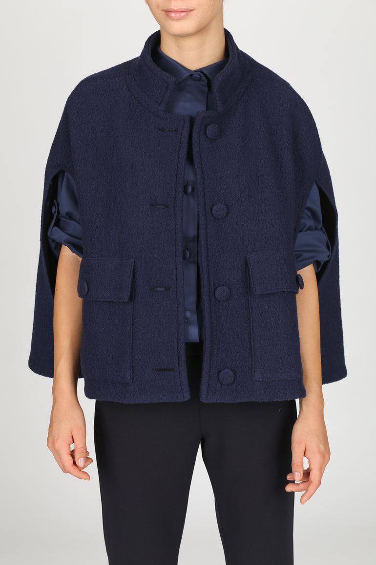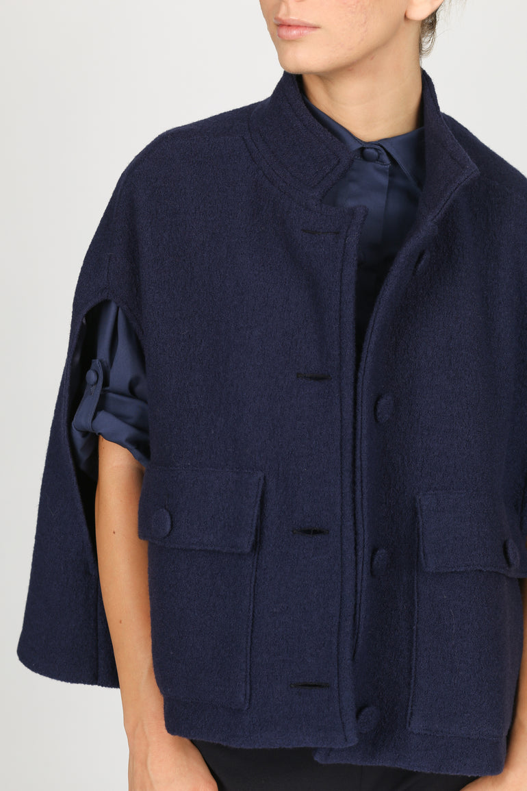The Camilla Wool Cape - Blue Navy