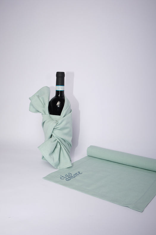 Crafted in pure Italian linen, it’s designed to wrap a bottle of wine, to elevate everyday rituals at the table.