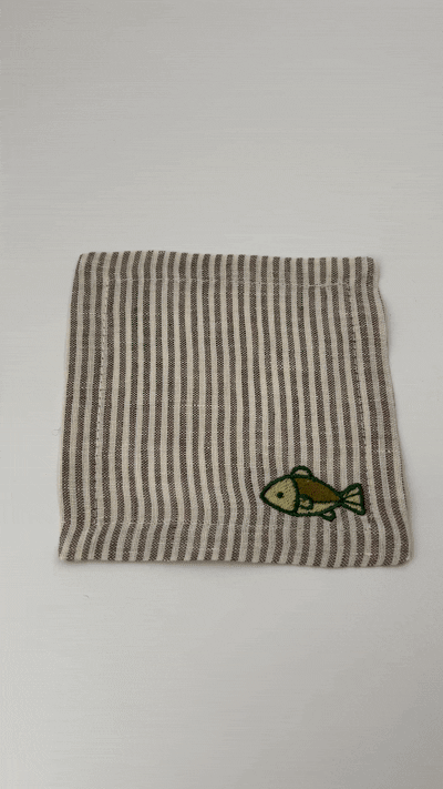Introducing our elegant Casa Marta coasters, perfect for adding a touch of style to your Italian summer table setting. Each coaster is square-shaped, featuring an embroidered a fish, ideal for toasting with elegance.