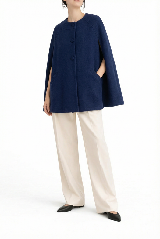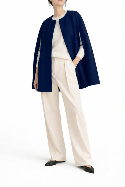 The Giulia Wool Cape - Blue Navy
